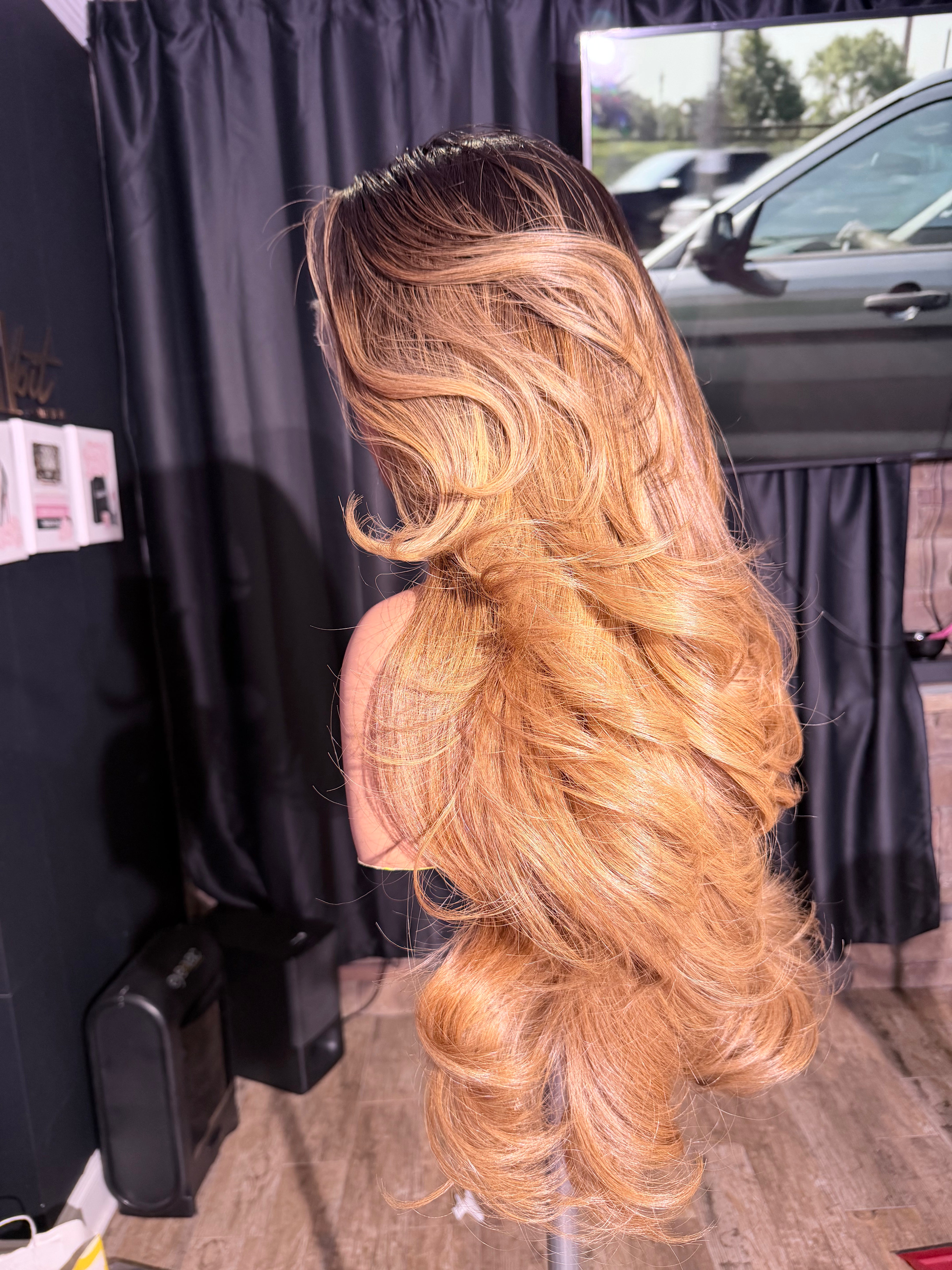 Color: honey toned ombré with dark roots
